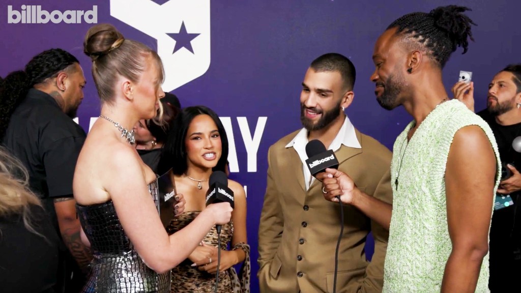 Becky G and Manuel Turizo caught up with QTCinderalla & Billboard’s Tetris Kelly at the American Music Awards 2025.