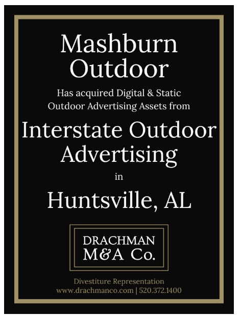 The post Mashburn Outdoor Acquires Interstate Outdoor Advertising in Huntsville, Alabama first appeared on OOH TODAY.