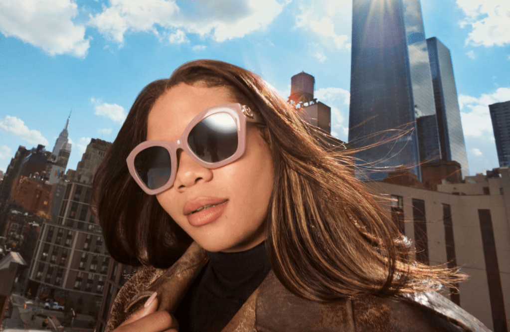 The new sunglasses come in a trendy ‘milky’ pink colorway, with contrast grey lenses for a fashion-forward fit.